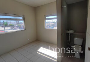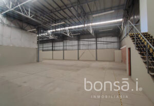 Commercial warehouse for rent, which has a reception area and office space on the second floor, four half bathrooms, a 6-meter-high steel curtain, 220 W lighting, and parking for six cars. Located in an easily accessible area.