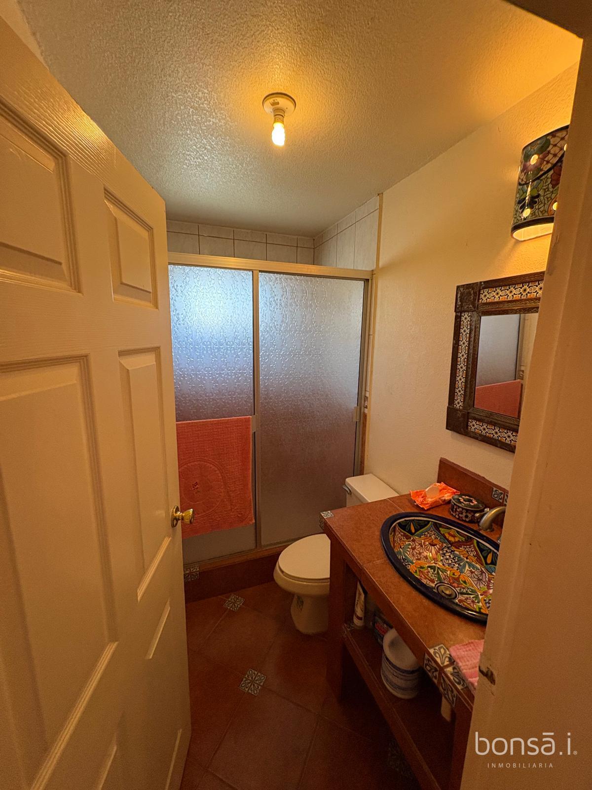 En la parte de abajo también encontramos una recámara con su propio baño que se puede usar para visita o servicio, anexos están el cuarto de lavar y un garaje con loseta para 2 autos.
