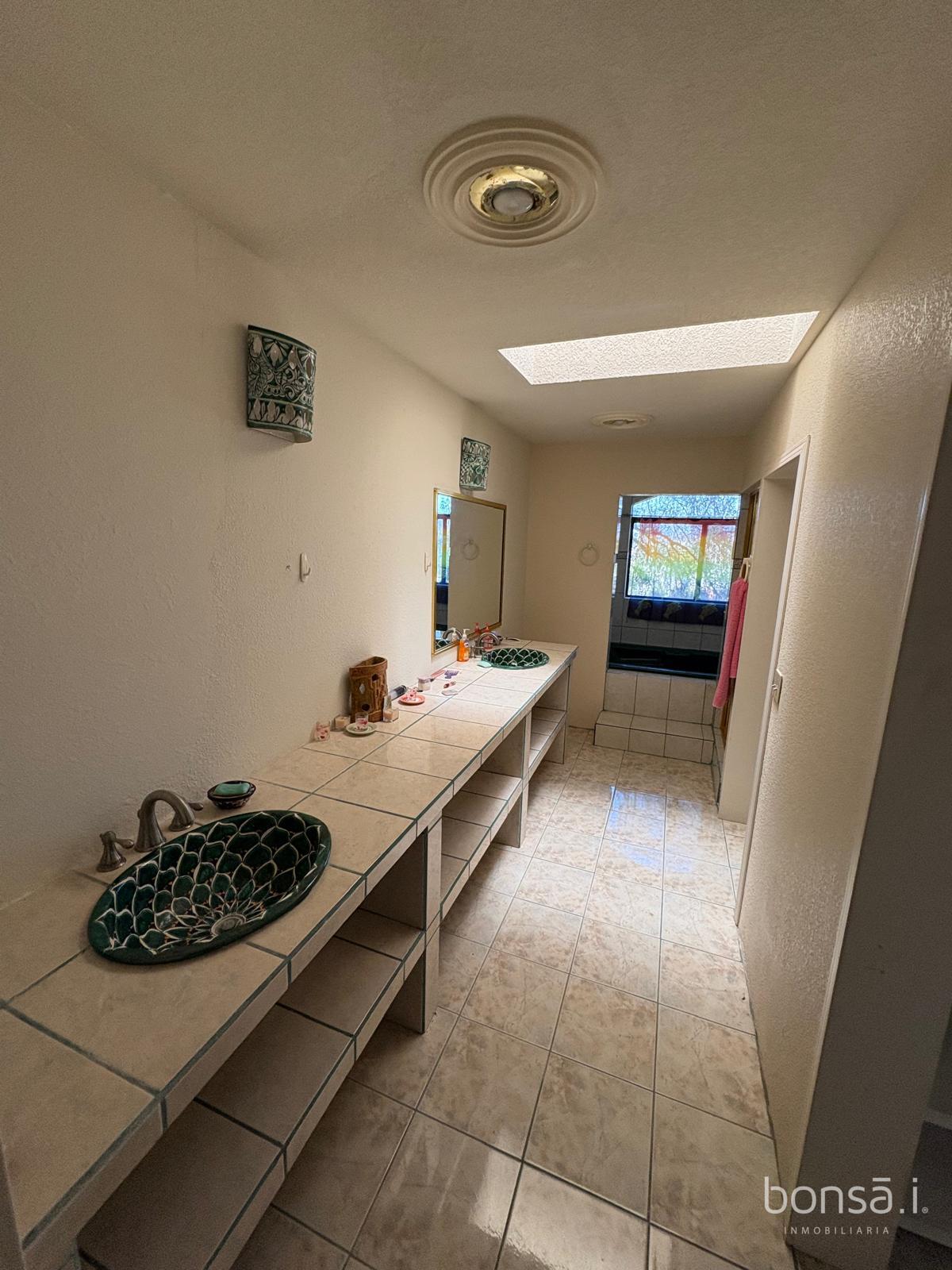 Por otra escalera se baja al área de recámaras donde se encuentran 2 cuartos que comparten un baño completo y la amplia recámara principal con su walk in closet, doble sink, tina y regadera independiente.