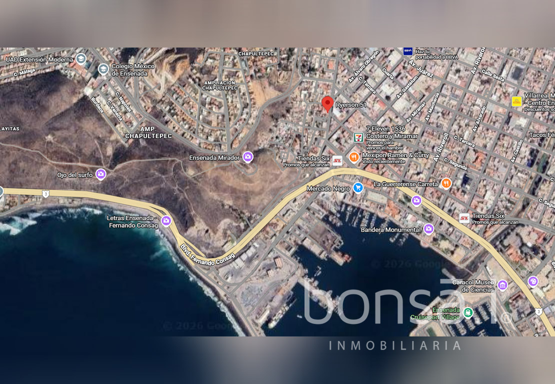 - Dirección: Av. Ryerson 51, esquina con calle 1ra, Zona Centro, C.P. 22800, Ensenada, B.C. México.